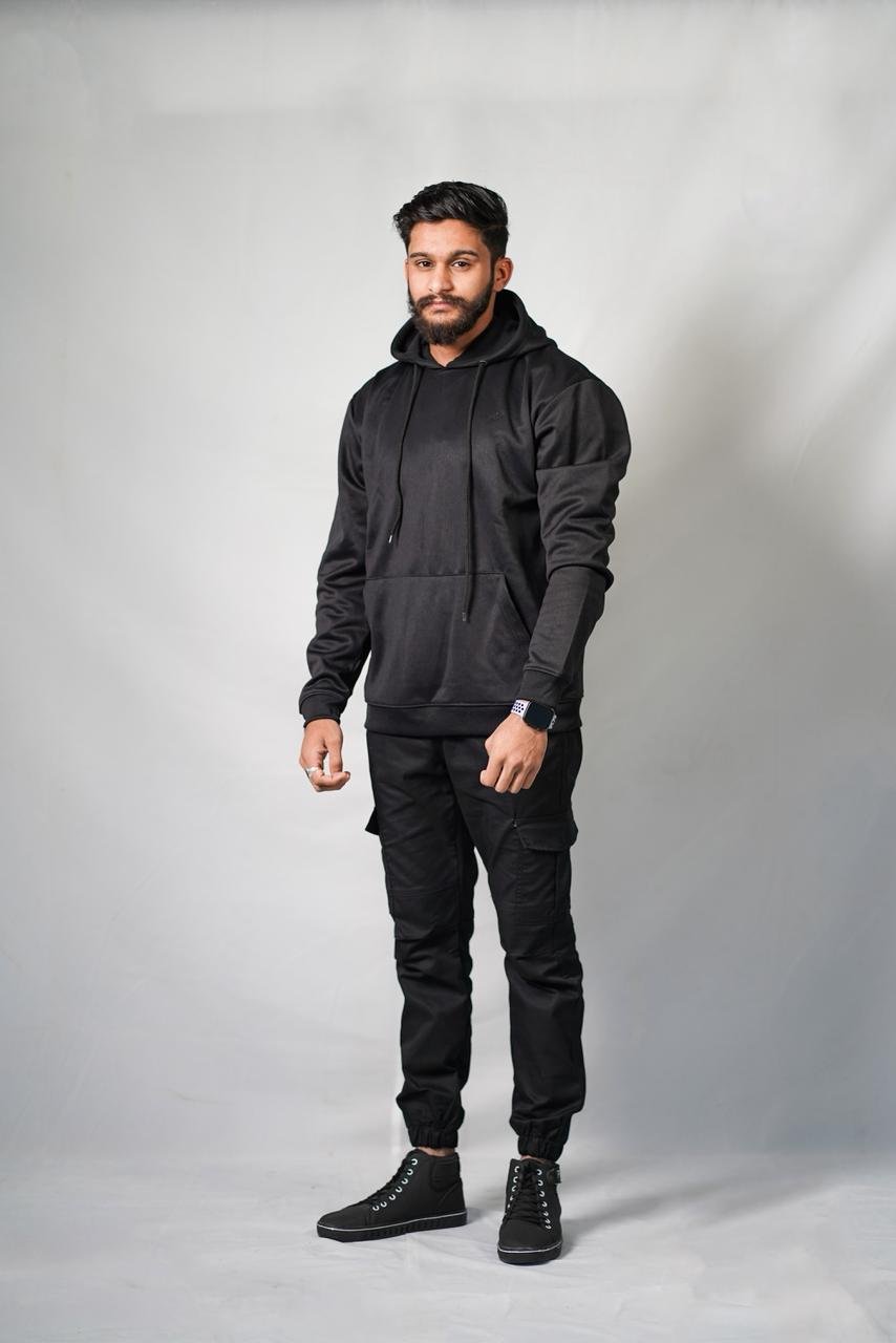 Step into effortless style with our Core Black Hoodie, a piece designed to bridge the gap between high-performance activewear and urban street style. This hoodie is crafted from a smooth, high-density fabric that gives it a slight technical sheen, offering a sharper look than your standard cotton pullover.