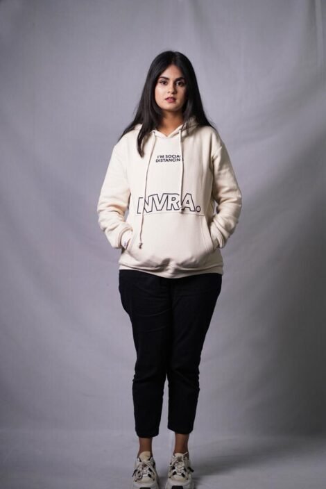 • Center Chest: A large, arched collegiate-style font reading “NEVORA” outlined in white.