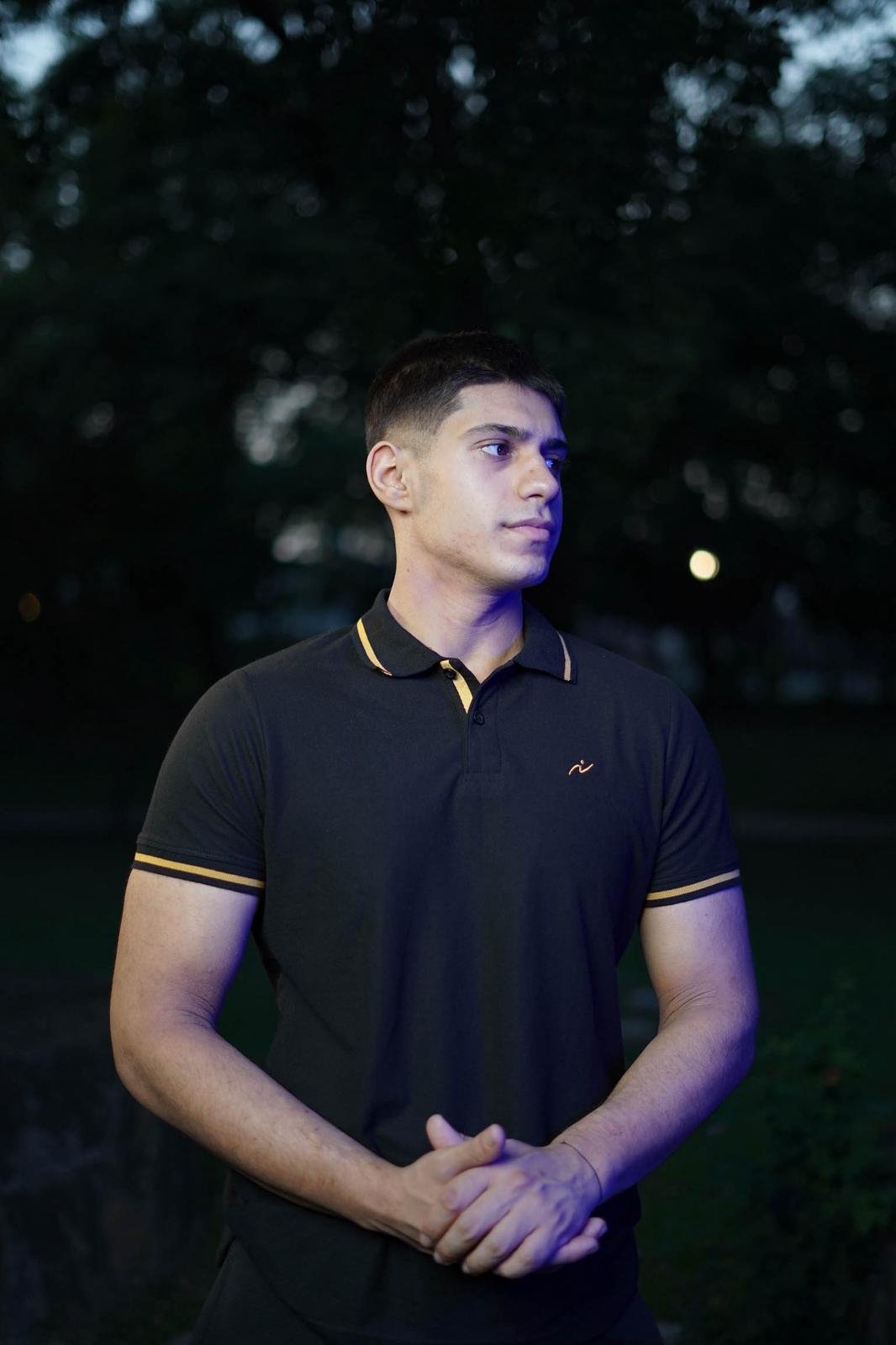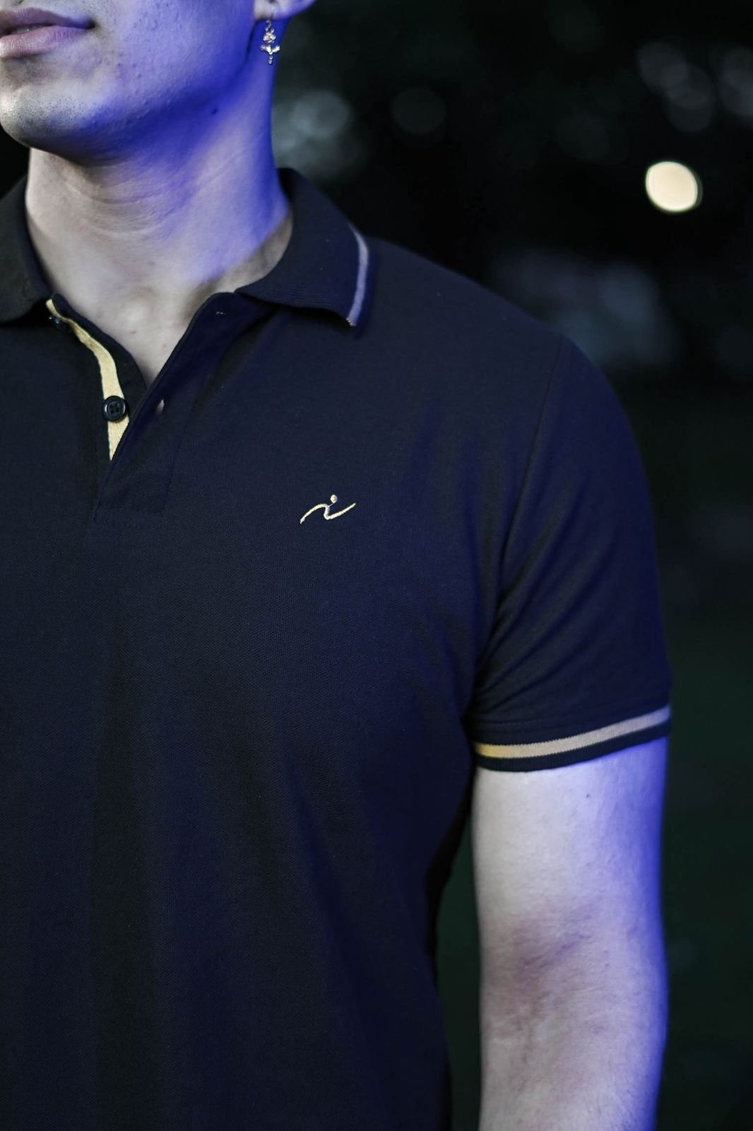 Elevate your everyday wardrobe with the Midnight Luxe Tipped Polo T-Shirt.