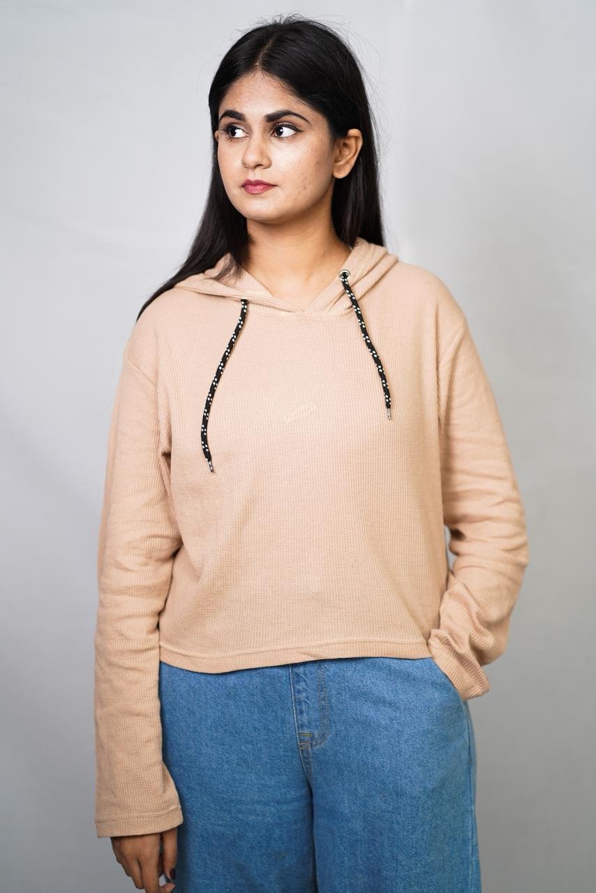 Be the first to review “Women’s Beige Waffle-Knit Cropped Hoodie”