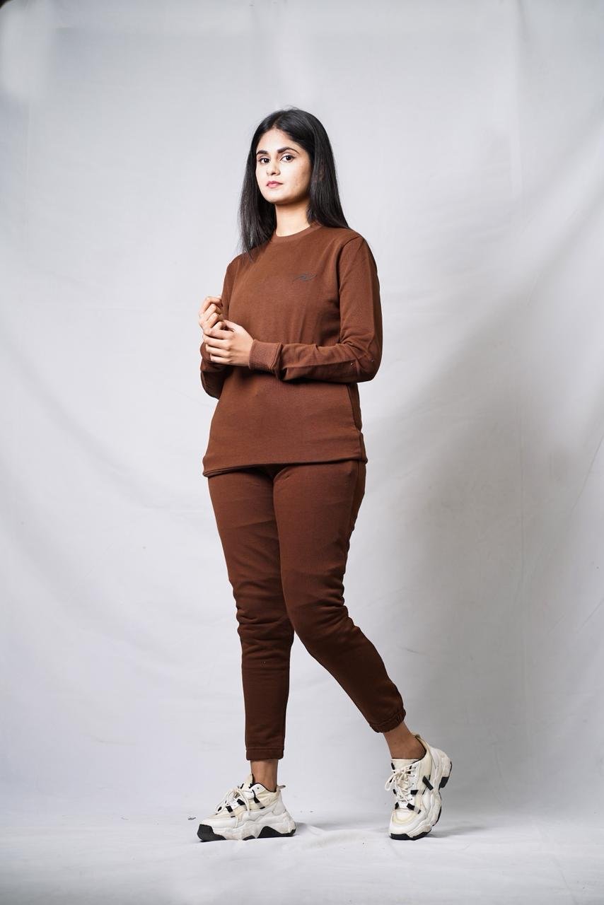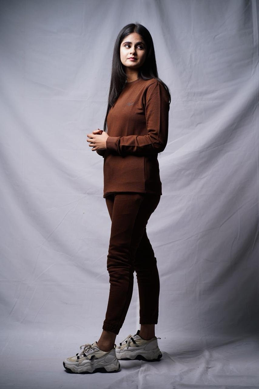 This matching two-piece set is the definition of “effortless chic.” The rich chocolate tone is currently trending, offering a warm alternative to black or grey. It’s designed for total comfort without sacrificing style.